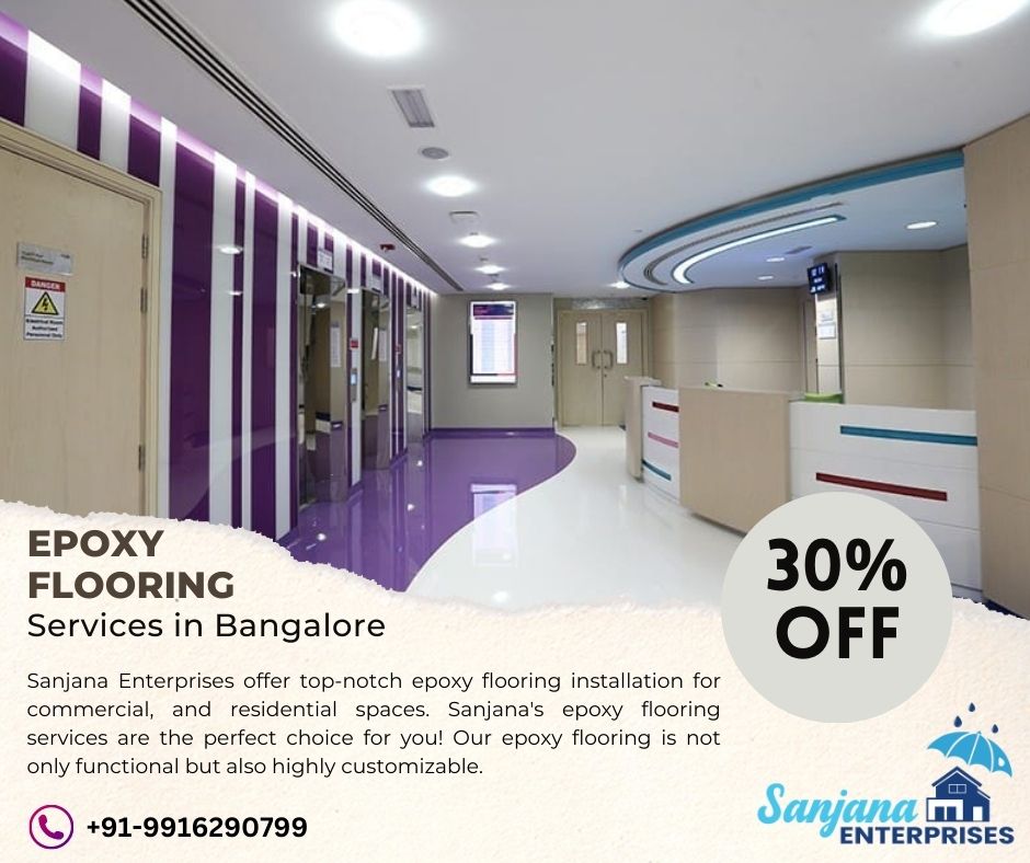 Looking for reliable and high-quality epoxy flooring services in Bangalore? Look no further than Sanjana Enterprises! Our team of experienced professionals offers top-notch epoxy flooring installation services for commercial, industrial, and residential spaces. From surface preparation to topcoat application, we ensure a seamless and aesthetically pleasing epoxy flooring finish that is durable and easy to maintain.